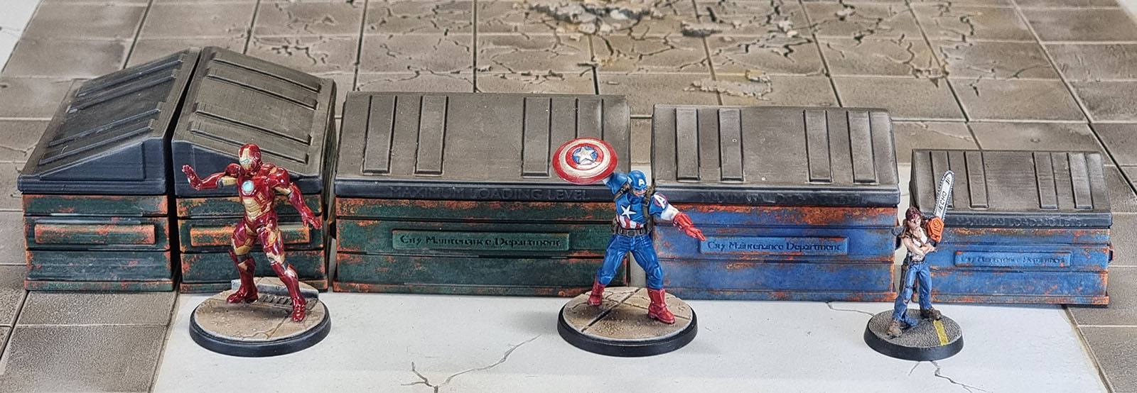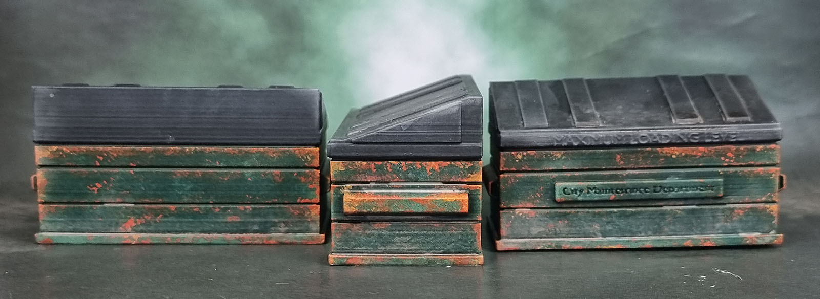 Since the tiles are still out, I thought I’d set them up and get a shot of the dumpsters set up on them – seems to work pretty well!