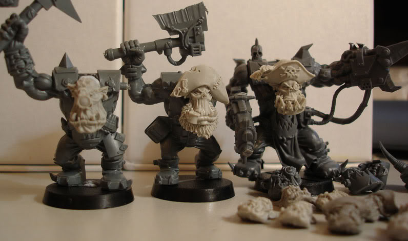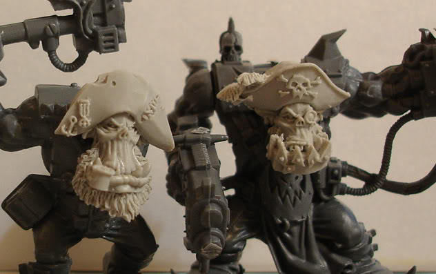 I have the Maxminis Pirate Orc heads. Just right for any group (crew?) of freebooting Orcs, Orks or even Orx that one may want to put together. I picked up both sets – the larger Nob-sized Pirate Orc Heads as well as the smaller Pirate Orc Boys Heads.