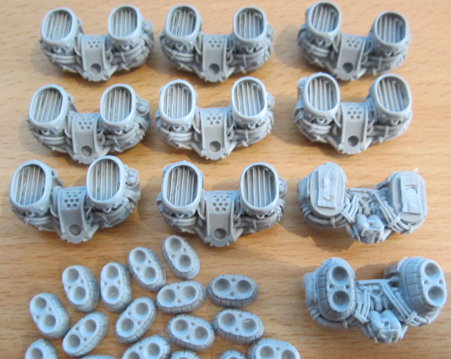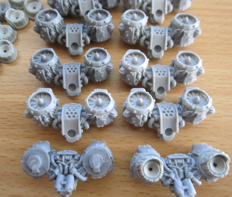 Finally, I grabbed a set of 10 of the Bronze Pattern Jump Packs. These don’t fit the old-school vibe in the exact same way as either of other the turbine-topped styles, but I thought the huge vented intakes looked pretty cool, so I again got a set of 10 to kit out a squad (of something TBD).