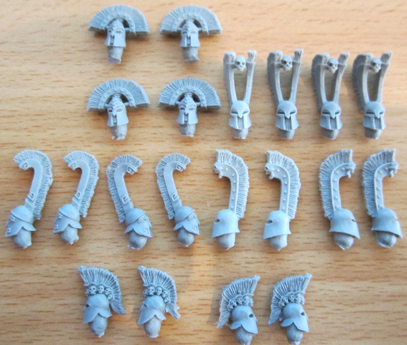 Finally, for this post at least is the Tribe of Black Lotus Helmets. A bit of a long, unwieldy name, yes, but some great sculpts. In the past I’d considered these but passed, as I didn’t have a specific use for them, but now I’ve pretty much got two solid options for them, and will probably go with both. These will be used in a mixture of a Greek-themed Space Marine force (no, not Minotaurs, though I’ll certainly use some of their Forge World parts) and also steal a few of them to use on Various Slaanesh Champion and Emperor’s Children figures. (2017 Edit – Erm, yeah, I am actually doing Minotaurs now, using these on the odd commander-type model!)