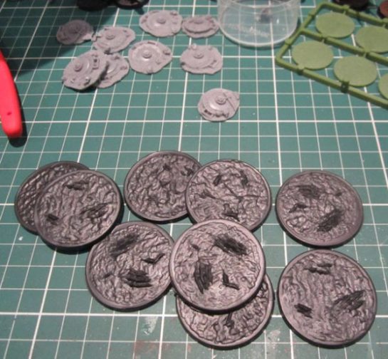 Agate Slices – available in a variety of colours – $15 each, sure. But that’s still probably cheaper than whatever crappy plastic summoning portals or vortex templates that GW or PP et al are selling. My first thought was actually Dark Eldar, but they’ll work for anything as far as I can see.