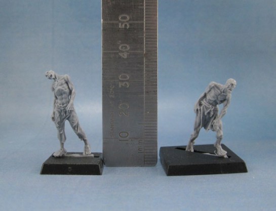 Anyway, as part of the Undead Army that I’m putting together for Marouda, I decided that some Zombies would be quick and easy enough to paint. So just before I prime them and start with the painting, I thought I’d do a scale post and review of them, since Tre’ still hasn’t done one. In fact, I’ve just added a new category to the page so people can find these things more easily since I still get a lot of hits from people searching out this information, so this way it will be a little easier to find.