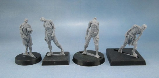 Red Box Games Lesser Undead/Zombies mounted on several types of base for comparison. 20mm round, 20mm sqare, 25mm round, 25mm Square