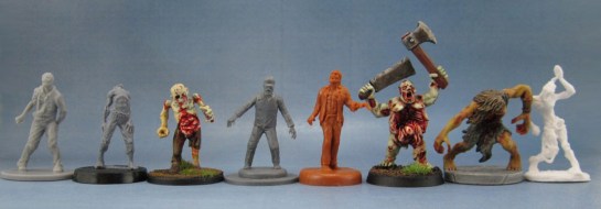 Flying Frog Productions’ Last Night on Earth is also a popular and fun Zombie game. Shame they seem too incompetent to figure out how to ship their Kickstarter products to Australia (though they’ll do it immediately with free shipping if you buy from their webstore!) Anyway, their figures are a little taller than Red Box’ ones, but close enough so that they would fit in together.