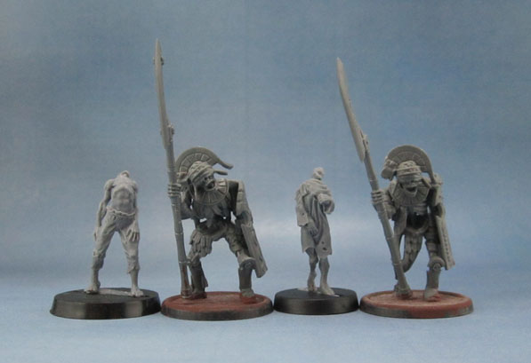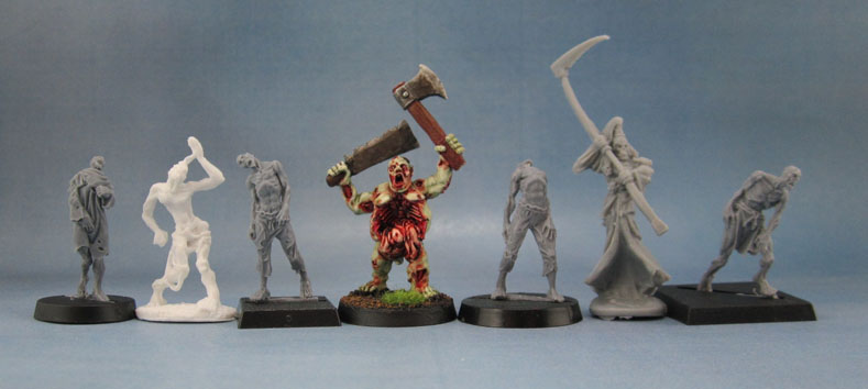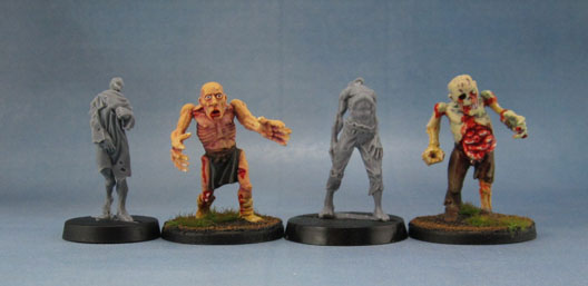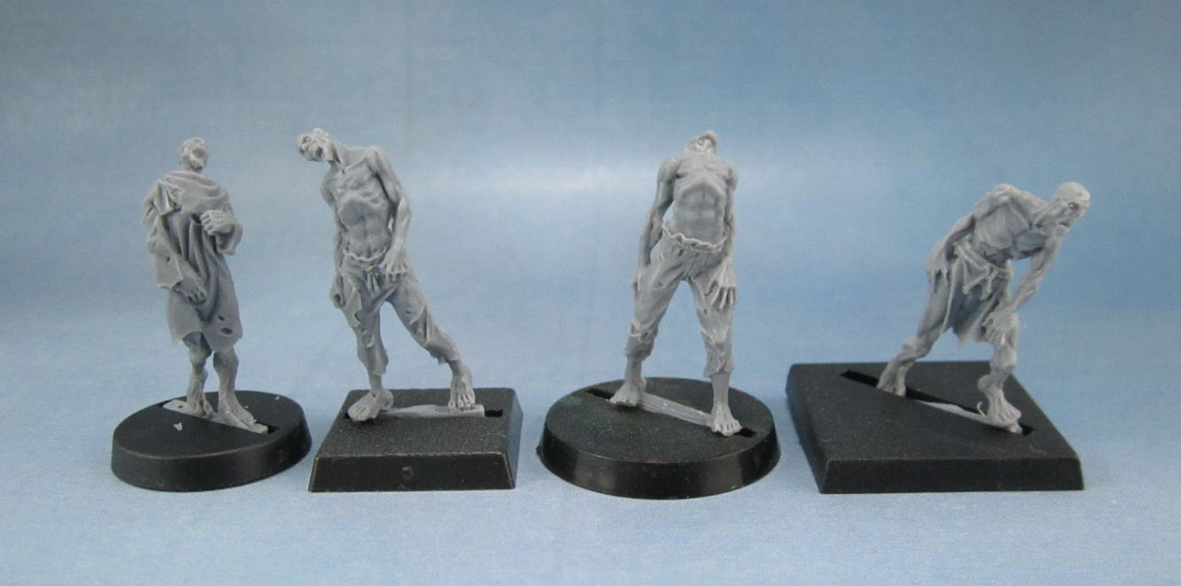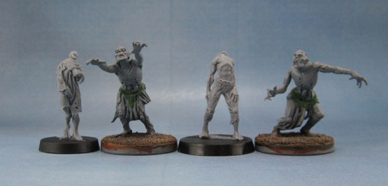 As you’ve no doubt already checked out – the figures are finely detailed, beautiful sculpts. They’re really not rotting zombies, nor do they have the distended bellies of the recently departed. They’ve got a shrivelled, almost mummified look to them. The nods to more traditional zombie models are the twisted, distorted poses, and the semi-skeletal faces.