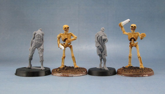Red Box Games Lesser Undead/Zombies mounted on several types of base for comparison. 20mm round, 20mm sqare, 25mm round, 25mm Square
