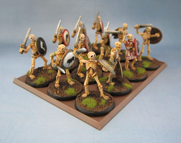 Wargames Foundry is a well-known maker of Historical Miniatures. At one stage in its history a sister company to Citadel Miniatures and Games Workshop when all three were owned/controlled by Bryan Ansell, their paths have diverged wildly over the years. While it’s generally well-known that Bryan took a lot of Citadel’s earlier very-historical-inspired ranges with him to Foundry. What’s less well known is the fact that they have some ranges like the Greek Mythology range, which features models like Harpies, Satyrs, Centaurs, Pegasi, our old friend The Bronze Bull, and our topic of the day – Skeletons!