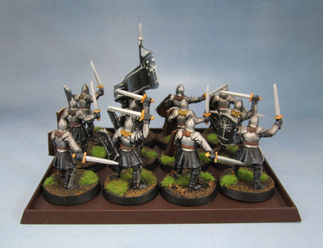 Now that I’ve shown some of them recently, I figure I may as well start to show them off here on the blog to help motivate myself to get the army finished. I’ve got two units of swordsmen finished so far for Kings of War – one set up as a Regiment, and one as a Horde.
