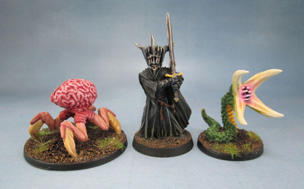 Now, my nerd-background is solidly on the Warhammer/LotR side rather than the D&D side, so when I saw the 03603 “Cython” and 03582 “Mind Eater”, I saw silly-weird Rogue-Trader-esque space aliens, rather than D&D critters, and decided to paint them up in that spirit – somewhat inspired by Cheetor’s Alien Flora and Fauna project (and the fact that they looked like they’d be quick and easy enough). So in the spirit of all that, I thought I’d paint these suckers up.