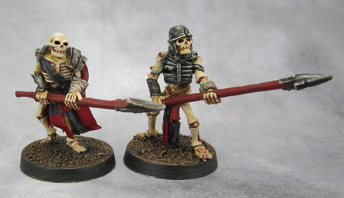 I picked up this pair of Skeleton Spearmen recently via eBay, paired with some Rackham Ghouls. They were reasonably priced and looked nice enough, and I was buying other stuff from the same seller, and I’m building an undead army, so why not?