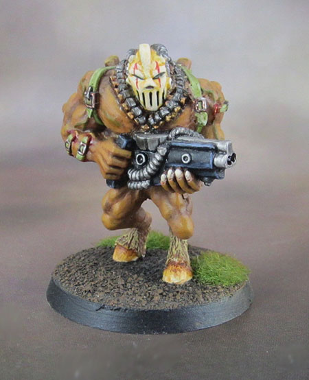 WarZone Carnal Harvester. He makes a great Big Mutant or Chaos Ogryn for Lost and the Damned forces. He’s not an especially Nurglish model, but he’s been painted to go with the Kitbashed Cultists from the previous few posts. Though without a wood-grain finish on his weapon.