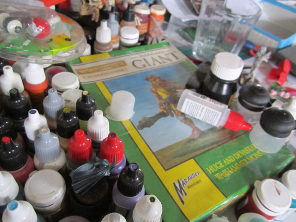 My original plan was to have the desk cleaned up, and everything assembled and ready for painting as of December 4th. Well, it didn’t quite work out that way. As of late last night, I managed to clean off the desk, though not reorganise it properly. I had Be’lakor assembled and primed black. The Talos is a plastic zip-lock baggie full of resin and the Giant is partly-assembled, and in its original box.