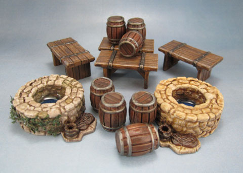 As a very exciting separate bonus – here are the Barrels and Crates from Reaper’s Bones II line. I painted these last year and photographed them because I’m now trying to photograph everything I finish, but they weren’t exciting enough to even sneak into any updates until now. So here they are.
