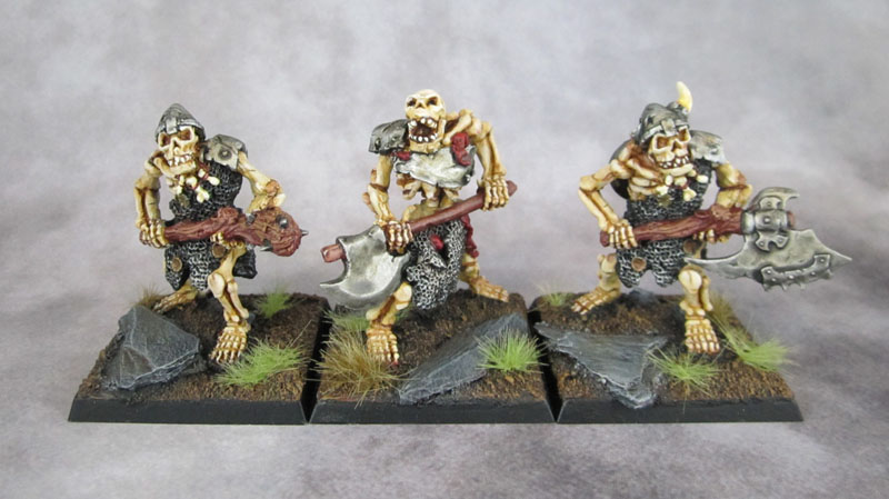 This trio will be used in Marouda’s Undead Army for Kings of War. We’ll use the entry for Zombie Trolls, since the stats fit well enough with these big fellas. Now I owe the Gondor Army a completed unit for January!