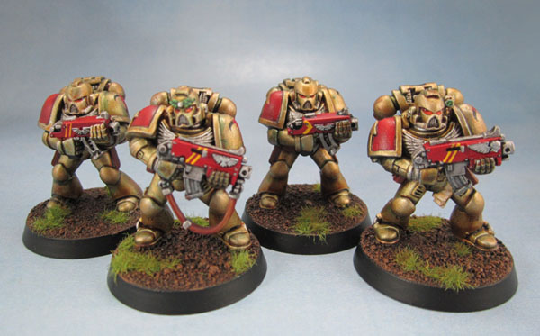 Anywho, I’m pretty happy with them and will continue with the same scheme. I’ve selected the rest of a squad worth and have started on a pair of them – using one of the many, many 2nd ed metal captains as the squad sergeant, and a metal 2nd edition flamer marine. The others will probably be additional plastic starter marines.