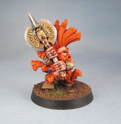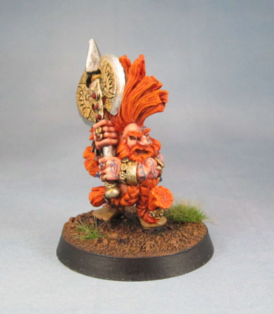 I bought this one along with most of the other metal slayers from eBay a year or so ago, and started him as I was finishing off the first batch that I showed off a week ago. I’m not entirely sure who sculpted him, or his compatriots as he was released after Citadel stopped crediting their sculptors properly and everything became the work of “The Citadel Design Team”. Probably Colin Dixon, since he did many of the post-Perry Dwarves of that era.