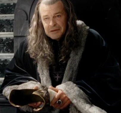 Even as Gandalf and Pippin ran forward, they heard from within the house of the dead the voice of Denethor crying : ‘Haste, haste! Do as I have bidden! Slay me this renegade! Or must I do so myself?’ Thereupon the door which Beregond held shut with his left hand was wrenched open, and there behind him stood the Lord of the City, tall and fell; a light like flame was in his eyes, and he held a drawn sword.