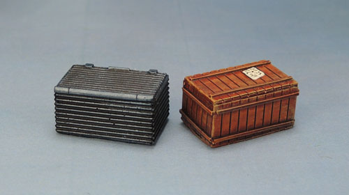 I also found a couple of resin crates that had been bought in the 90’s and sitting around part-painted for years, and spent the whole of 10 minutes that it took to finish them as well. I have the attention span of a flea, sometimes… I think they’re probably originally from some set by Grendel/Scotia Grendel, since that’s where most of my really old resin junk originates from.