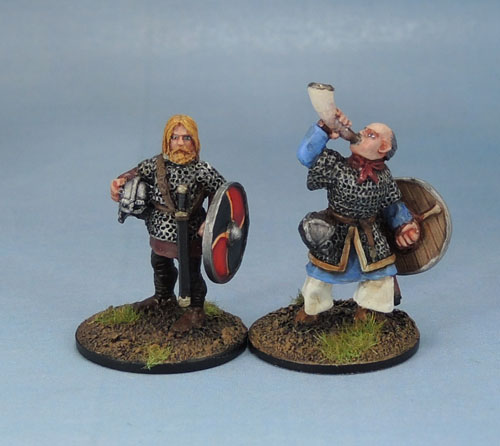 His mate in the picture above is one of the smaller figures amongst my metal Vikings, but he’s got a bearing to him, both in the pose and especially in the facial sculpt. Like he’s the sort of bloke you wouldn’t want to mess with. The horn-blower on the other hand looks like he has a big plum for a head, but the ruddy cheeks work for his pose.