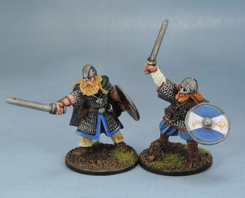 The final pair are amongst my very favourites of all my Viking models. I think these two are both by Foundry again – Edit – Turns out that Mr Gingerbeard here is actually a Gripping Beast figure, “Viking Warlord“. I’d had him pegged as a Foundry figure as his sword is very much the same as the Foundry models, and often the style of weapons on historicals can be a good clue as to which figures are from the same range, along with size and pose style, both of which fit in well again with the Foundry.