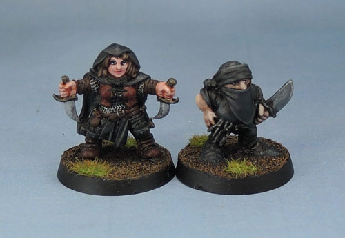 His partner in crime is another of Stonehaven’s dwarves from their 2012 Kickstarter. I’ve shared a few of these figures before now, and if I ever finish painting the lot of them I’ll do a group shot. This dwarf rogue was started a couple of years ago to represent an NPC in our very, very occasional Pathfinder campaign. She fit the bill perfectly, and so a couple of weeks ago I saw the half-painted figure sitting on my desk and finally made myself finish her off. No thieves tools in play here, just a pair of dual-wielded daggers for some stabby good times.