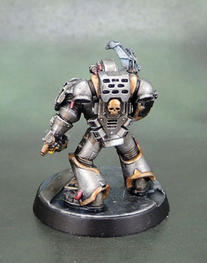 The rear view really just shows the plastic SM Backpack. If anything, I think it helps to illustrate how well a mix of modern parts has always worked with the CSM kit when building Traitor and Renegade marines. The Long War would create a convoluted logistics situation between the 5 marks of post-thunder armour that was worn by the combatants during the Heresy, since-corrupted armour, Legion-made Artificer armour and that built by individual Astartes (especially in a chapter like the IW), armour fabricated in captured Forge Worlds and by their Dark Mechanicum allies – not to mention that taken as battlefield trophies/loot. Which makes me think. I should add some Imperial Fists (and successors) trophies in with my IW somewhere.