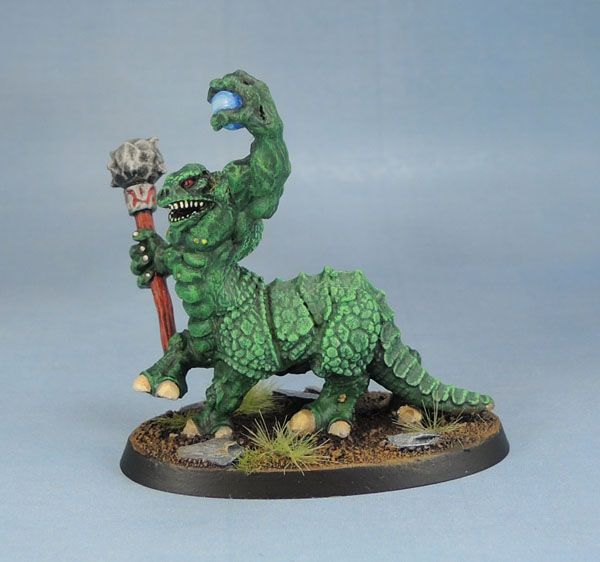 Another quite old model today – one of the 2-part Zoats for Warhammer Fantasy circa early 3rd Edition. There were at least three designs of the original Zoats – this one, the “Mage”. “The Warrior” with a mace-axe and also the original one-piece casting, which was a fair bit smaller. I’ve just read about the existence of a “Baby Zoat“, though I’m a little dubious, as the sculpt looks a little …modern? There are certainly more modern takes on the concept though, especially with the popularity of “Oldhammer”.