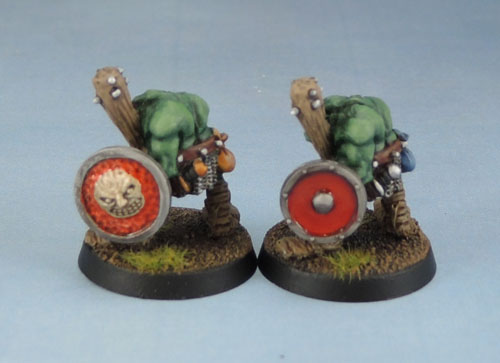 I painted the duplicates of #13 with slightly different coloured gear, and different shields. I do intend to use several different styles to paint my orcs’ green skin over time, and a more coherent plan would have had me hold off painting one of them now to do later with a different shade of green, but frankly there are so many of these figures to do, that doing near-identical figures in pair or trios is simply much more efficient in getting me to actually start and finish the models. As in, I’m great at starting models, but not quite as good at finishing them off. The more complex something becomes, the longer it lingers on the desk – and regular readers will have seen how often I write about figures that got started months, years or even more than a decade ago before being finished. I don’t need to add to that particular pile more than I already do…