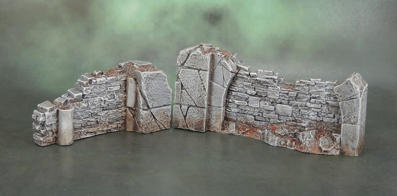 A year (or two? three? I seem to lose track so easily!) or so ago I got a whole bunch of resin scenery bits along with some secondhand models from a local guy. As what seems to always happen, I put some of the terrain away to one side with the intention of quickly painting them up, and then naturally lost track of where I’d put the damned things for literally months. Over my Christmas/Summer break – which is when I tend to like doing scenery due to good spraying and drying weather along with time off work, I found them again and this time got them out and knocked them out. Mostly drybrushing with greys, painting the metal parts and then painting Army Painter Dip over the lot before a matt varnish.