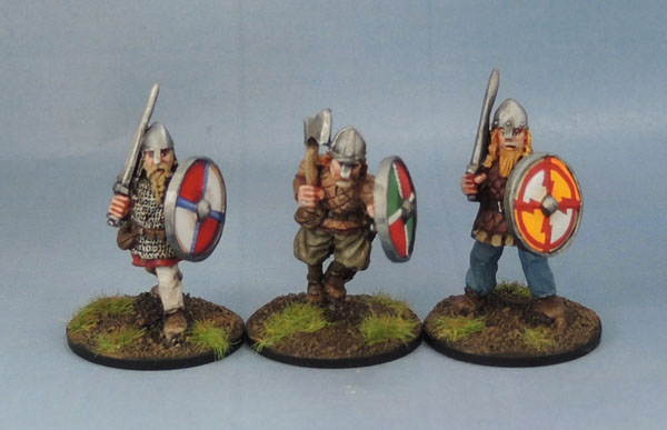 These figures mark the beginning of “Book Two” of my Vikings. Cannon’s ones are all now done, so we’re onto the Vikings that I’ve actually purchased myself. These three are from Wargames Foundry, and are in fact the old 1986 Citadel F8 Vikings “Oldhammer!” that Bryan Ansell moved across from Citadel to Foundry back in the day. I picked up two of the packs awhile back (VNS001, VNS004) and skipped the berserkers and archers for now.