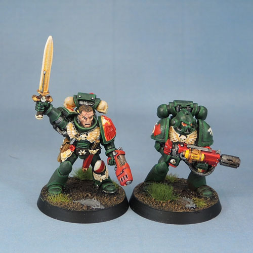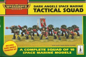 This force was originally inspired during 3rd edition, by Ed B of Powerfist fame (infamy?) when I was at his place one day and he showed me his Dark Angels. I thought they looked bloody nice – and not too difficult to paint. This was during the time when things weren’t yet especially blinged out. I did repurpose a Legion of the Damned backpack for him, inspired by Chapter Master Azrael’s own pack. You’ll note the models in this box are basically just regular space marines, with the exception of the Sergeant. The bright yellow fuel canister on the Melta is a bit of a 2nd edition throwback as well…