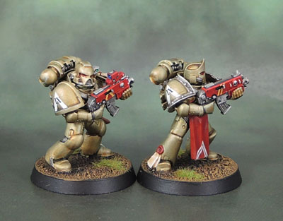 The other additional parts are of course Forge World’s Minotaurs shoulder pads that look pretty impressive as always. My only gripe with them is that some of them seem completely inappropriate for the left shoulder pad. I did finally come up with a solution for that, which I’ll post up a bit later on.