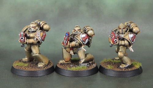 As with a lot of my Minotaurs, I’ve added in a few third party components here, which today are all from Anvil Industry, who are one of my favourite suppliers of unofficial bitz. Two of the marines have scopes added to their bolters while once again I’ve sprinkled in a couple of Anvil’s “Spartan” helmets. The tabard is also from Anvil, though they’re currently OOP for some reason.