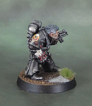 Something I really noticed on this figure is just how easy it was to paint. Seriously. Black armour, a grey lining, then careful sort-of drybrushing on wear points and the odd thin line for scratches over the armour. Really quick and easy, and it looks effective. Just got to keep the messiness looking neat and focused rather than like the model’s simply been randomly drybrushed with silver. I likely will continue to keep most of my marine models “clean”, but I’ll retain this colour scheme across all of my Fallen and it should be a doddle to get the painting done while giving them a unique look amongst all my power armoured models.