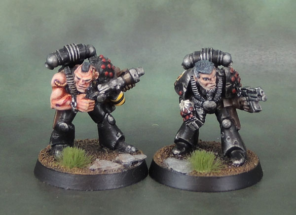 Since I only have the pair of these done so far, I thought a 2-shot was in order. Both of these guys have rather hunched postures, something that was common to the original RT-101 line. I’ve got a few other original metals to allocate here and there. The hardest part is working out which ones to use in which army. I’d love to set up a full squad of RT-101 marines for The Fallen, but I’ve got a couple of them earmarked for Legion of the Damned and Iron Warriors, as well as my RT-inspired Crimson Fists project. There’s just not enough to go around – I need some more old metal beakies!