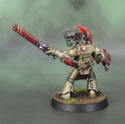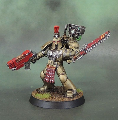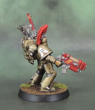 Once again, FW Minotaurs shoulder pads were added and the armour was “brassed up” a bit from the original to fit in with the rest of my force.