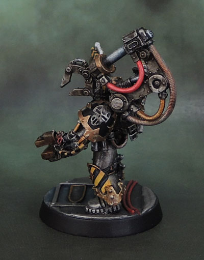 So yeah, I’ve had this figure for over a decade, and again, as part of the finding and finishing 40k figures and putting them into armies that I’ve been up to lately, I finally got this guy done. As per usual, I remounted him onto one of the new Sector Imperialis bases. As he’s got quite a lot of cabling on him, I wanted to make some of them a little distinct without doing the whole “skittles” thing.