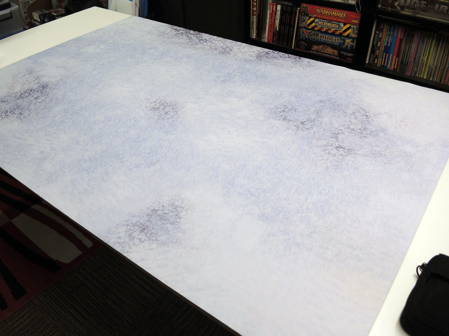 Recently, at the end of 2016 I placed an order for three gaming mats from Urbanmatz, based in the Czech Republic. There was a delay on one of the mats I ordered, as it was out of stock for a few weeks, though Martin was kind enough to offer me a freebie Snow Territory mat, which he explained had some yellowed stain marks on it. I gladly accepted the offer, and am reviewing the mat now, with the noted discolouration noted and allowed for. I recently reviewed their 6’x3′ Space Mat along with the Fantasy Flight 3’x’3′ X-Wing Starfield Mat.