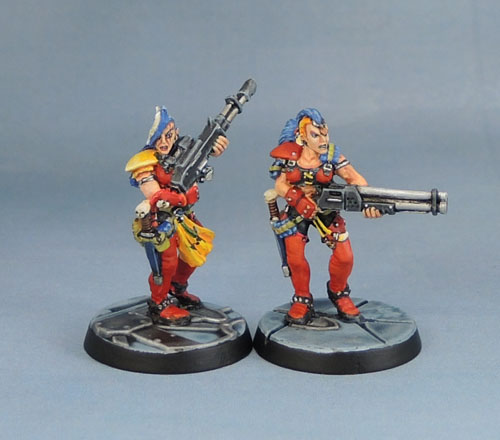 Heh, well the Escher always seemed to be one of the more (literally) colourful gangs of the underhive. I’m just drilling out slots for the tabs of a couple more now. RL has impacted pretty severely on my painting time at present, but I’ll get them done eventually.