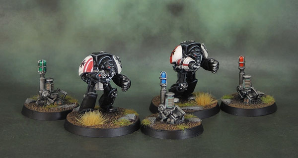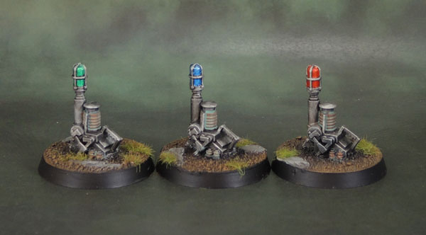 I’ve also done these Teleport Homers recently-ish, so I thought I’d throw them in here. More or-less one at a time as I’ve found them on sprues and amongst other junk, just copying the same scheme, and varying the colour of the lights – just in case I ever use them for anything and need to  distinguish them from one another. I guess I could even use them as objective markers from time to time, especially since Terminators don’t actually need them anymore in 8th edition.