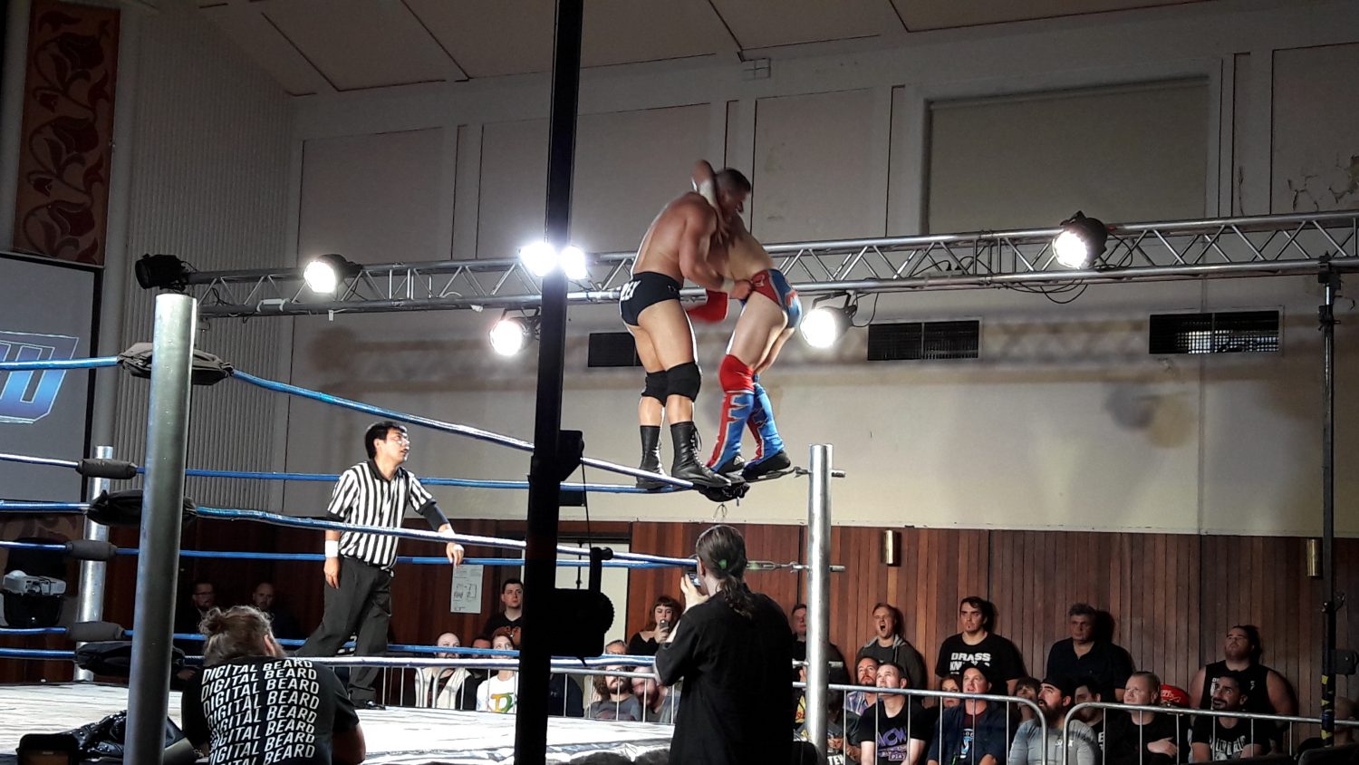 Since this was my first show at this promotion, I had no idea who anyone else was – who the babyfaces or heels or tweeners are, or what their characters, gimmicks or finishers were. Most of them managed to get that across reasonably well. The matches ranged from pretty meh, through to surprisingly good. Match of the night was the main event for the Intercontinental Inter-Commonwealth (what?) Title, which ended in a disappointing clusterfuck finish, and the women’s match. Not a bad night in the end, so we bought some merch from a couple of the wrestlers as souvenirs of the night and to show them some support.