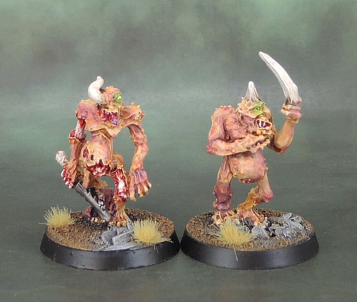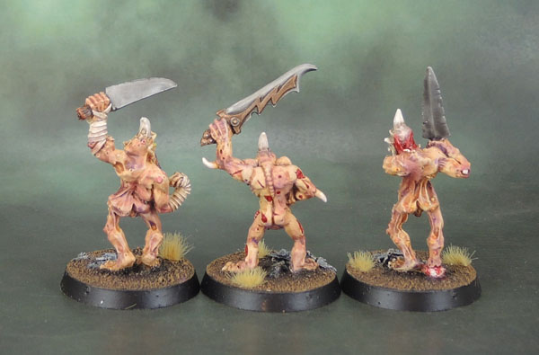 Here’s two pairs of duplicate figures. While the aesthetic could easily be questioned on these, the sculpting in the finer details is miles ahead of that found on the command models. I’ve used Citadel’s Blood for the Blood God (a dark, glossy clear red) in their open wounds, though you can’t really tell in the photos. As with the Spartan Shield on the Minotaur Captain, it ends up looking quite flat when photographed.