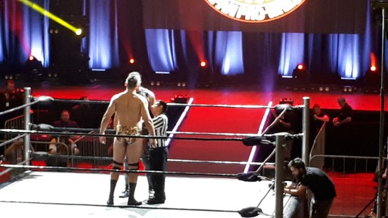 A special thank you to Bad Luck Fale for being one of the driving forces behind the tour, and also to the group who I believe were his family, especially the older gent who told us to move forward when they left the show shortly after intermission. (If you happen to see this, Fale – please do pass on our thanks!) We had good seats which became great ones for the final three matches, including the main event.