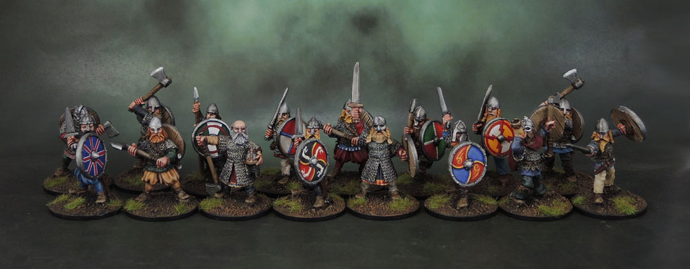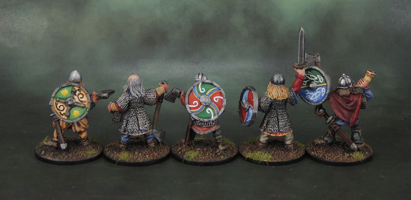 Finally, I’ve finished these metal Viking models. These are the final five of my Perry-sculpted Wargames Foundry rebadged 1986 Citadel F8 Vikings. This little group also completes “Book Two” of my Vikings. “Book One” can be found here. They were intended to be the last of the models I completed for Squad: March, but it didn’t work out that way. Because Shields.