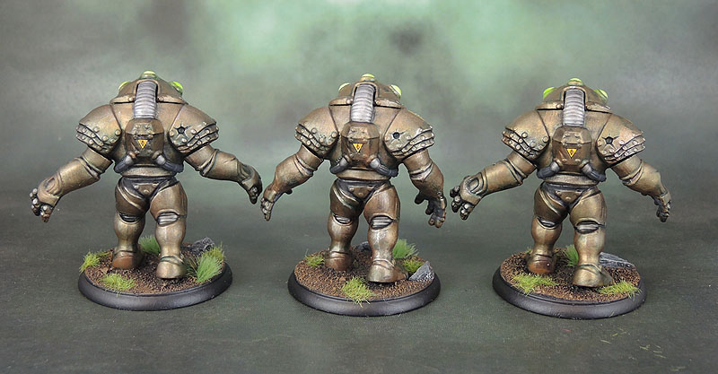 Another trio of my last-minute, get-to-30-models-for-the-month frenzy at the end of April, the Harvesters (or Harvestors, during the Kickstarter!) ticked a few useful boxes. Simple figures. Simple colour scheme. Minor Assembly. Able to be speedpainted. A few decals, particularly from the AdMech sheets to make the suits a bit more detailed, and also give them a tenuous link to a 40k faction, in case I find something to double-duty them with. (Probably industrial servitor drones as scenery, at a guess).