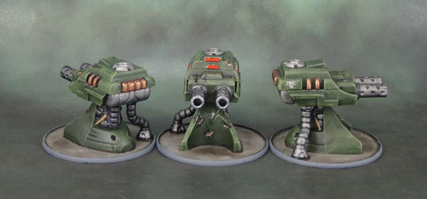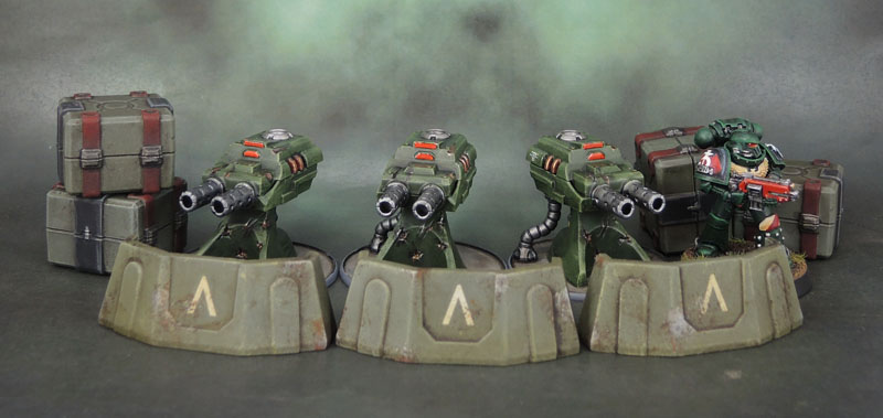 I considered painting them in silver-greys because spaceship, but again – I like generic. Besides, they’re a pretty odd design. What looks like an energy cable, yet the weapon has what looks entirely like the gun barrel shrouds that you’d see on a machinegun. And some odd-looking power pack and vent-type stuff on the sides and rear. So I’m going to go with yet another miniature model weapon system designed by someone with no real understanding of firearms or weapons.