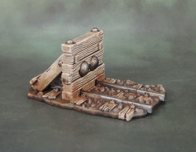 The quality in this kit is probably best described as variable. The buffer stop is rather excellent. Nice and chunky. The actual stoppers look a bit oversized, but fine. I painted the reinforcements and such as metal rather than wood mostly as an excuse to get some more colours onto it, and I’ve gone for a pale wood, not quite grey yet – to represent aged wood. I’d have added some grass, etc, but since I figure this is going to spend a lot of time deep in a mine when playing SoB, I’d keep it without any of that sort of thing.