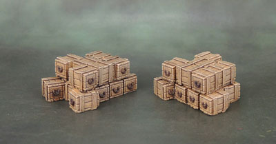 Anyway, on Monday night while I was working my way through this stuff, and the Pylons, and the dive-suit Harvesters, and the Auto-turrets, it quickly became apparent that I was not going to get he turrets finished before April ended. So I went searching for some simple resin terrain that I may not have painted. I found this pair of crate stacks, which I picked up in the 90’s from Grendel (now Scotia Grendel), and quickly knocked them up over an hour or so (mostly drying time) while working on the other stuff. In doing that, I hit 31 models for the month of April – which achieves my goal for at least one miniature for each day, every month in 2018.
