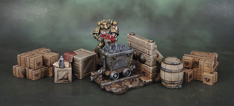 Here’s the “Mine Terrain” set, along with the crates, and a Space Marine to provide scale reference.