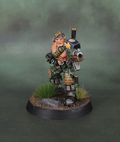 Basically, despite the gigantic moob-like slabs of beef across his chest, and his American Dad-level chin, this guy is a fun and well-sculpted enough rendition of the “Rambo” trope to have passed muster for me back then, so I picked him up. I don’t believe I got any Sea Lions at all. The idea was for this guy to be an Imperial Guard Catachan-style Captain. Hence the “C” command icons all over him and his gear.